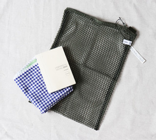 ちなみに、 ちゃんのお気に入りの アースカラー&白の洗濯ネットは 薄手のTシャツやシャツが入る大きさです。 下着も数枚入ります。 そんなすぎやまが撮った1枚目の写真には、 なぜかほぼ日手帳がうつりこんでいます。 「大きさがわかると思って、置いてみました!」とのこと。 今回の「おうちたのしみ箱」には 手帳は入っていません。すみません。