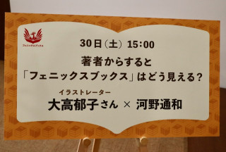 フェニックスブックスフェア 本日ふたつ目のトークには、 今回仕入れた本のうちの一冊 『久保田万太郎の履歴書』の著者 大高郁子さんにご登壇いただきました。 自著が断裁の淵に立ち、 そこからまた救い出されるのは いったいどういう気分なのか、 率直なところを語っていただきました。