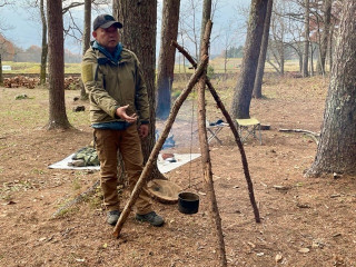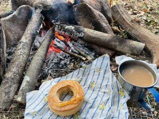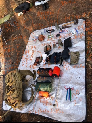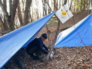 ブルーシートでつくる寝床のつくり方を教えてもらいました。