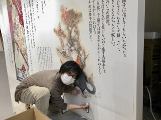 笑顔で、まじめにのぞむひとが多い中、 ちょっと目がうつろなひとを発見。