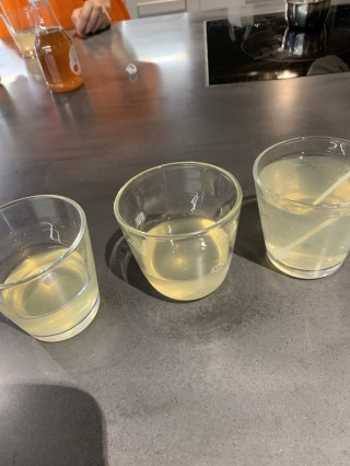 この「適量」の変化で味がどう変化するか、 『LIFE』と食品チーム合同でやってみました。 用意したのは、3つのコップ。それぞれに 「小さじ2のはちみつに、小さじ1のうめ酢」を入れ、 そこに