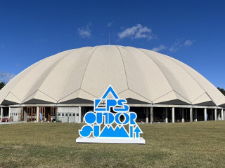 会場の松本市やまびこドームは晴天!