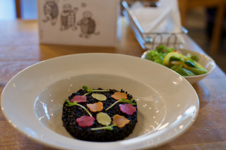 カフェで鹿児島さんの作品を食べて(イカスミリゾット)、