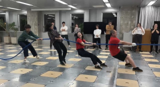 メンバー同士で引き合う練習では、