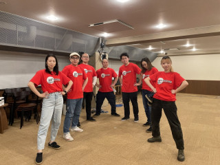 さっそく新しいデザインのTシャツで集まり、