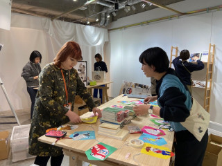 柴田ケイコさんの絵に 超アップでぎゅーんと寄ってみたり、 tragenの大きなポケットに その場で文具をたくさん入れてみたり、 piece,の生地ひとつひとつを 角度を変えながら眺めてみたりと、 ライブならではのご紹介をしていきますね。