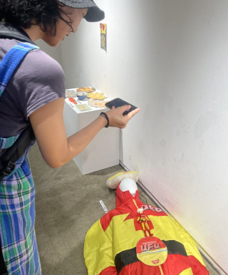 会場で、八谷和彦さんに 20年ぶりくらいにお会いできて、 とてもうれしかったです。 八谷さんとニコラさんはお親しいのです。 (写真の「スーパーカー」のTシャツが八谷さん)