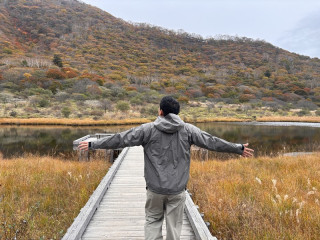 覚満淵に、大沼、小沼。 どこも自然たっぷりで、静かで、 東京とは時間の流れ方の印象が まったく違います。 紅葉する山々も美しい。 三ツ井くんが明らかに 自然の中でいきいきしている! うれしそう、たのしそう。