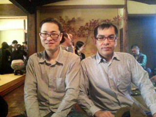 写真じゃちょっとわかりにくいのですが…シマシマンズがいた!縦の!しかも二人ともメガネ!いただきます前の山下とオッティーでした。