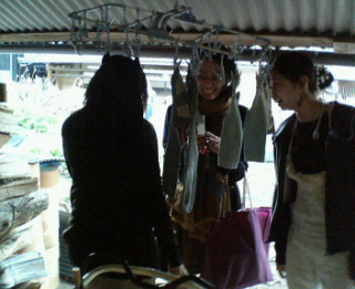 干してあるくつしたの間から撮っているひとたちです。「あ、くつしたが写ってる!」