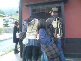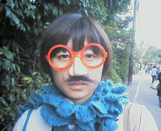 駄菓子屋にて、ゆーないとさん、鼻メガネを購入。満足げです。