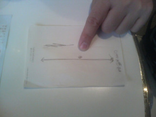 線が一本に丸‥。果たして地図にする必要があったのか‥。ちなみに、つけもの買ってきてというモギさんからの命令の地図だそうです。