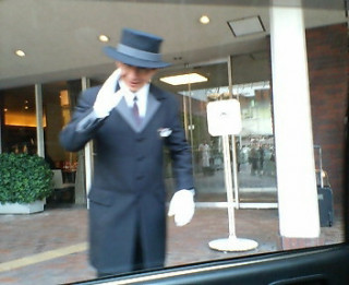ホテルを出て今からは自由行動。シルクハットのジェントルメンに見送られ、ホテルをあとにしまーす。