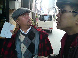 イノダコーヒーを出たところでトミちゃんと遭遇。イノダコーヒーはぼくらの出会いの場所なのさ。