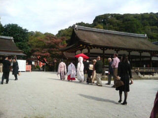 一休みしてたら大名行列じゃなかった、結婚式の行列が。花婿さんは、外国の人でした。