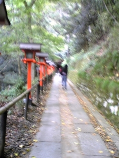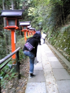 すたすた上る渋谷ちゃん。標高850m、市街地より3度低い鞍馬山は山でした。さ、酸欠や。