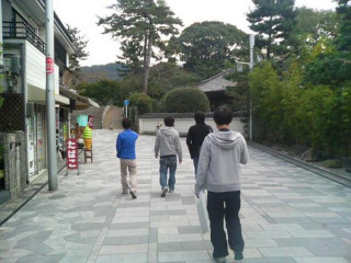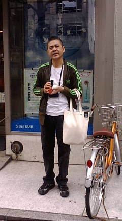 早くも携帯の充電が切れてしまった糸井さん。コンビニで簡易電源を買って苔寺行きのバスを待つ間に充電してます!はじめての経験だそうです。営業マンの基本ツールですよ!
