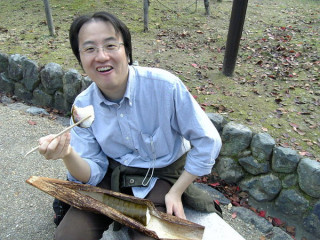 円山公園でお弁当の鯖鮨をいただきます。こっ、これは宇宙的なうまさだっ!!
