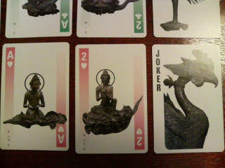 さっきぐっさんからも紹介がありましたが、平等院鳳凰堂で買ったトランプがこちらです。平等院鳳凰堂の内壁には、本尊阿弥陀如来像を囲むようにして52体の「雲中供養菩薩像」がかけらているのですが…。もう、おわかりですね!このトランプにはその、52体の「雲中供養菩薩像」が一体ずつ印刷されているんです!このコンプリート感には完全にヤラれてしまいました!興奮のあまりの長文、たいへん失礼いたしました。