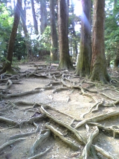 山のなかは根っこパラダイス!根っこパラダイスでさば(寿司)ターイム。このあと、いざ温泉に!
