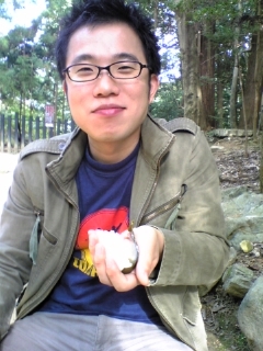 日頃から髪の毛にいろいろつける、おっくん。おとといはカニを昨日は綿がついてました。今日は小枝をつけてます。雅な男でございます。