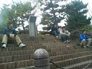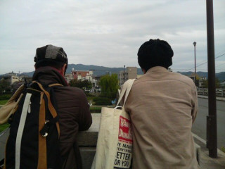 鴨川を見つめながら、物思いにふける武井さん・・・って、なんか、縮尺、おかしくないですか!