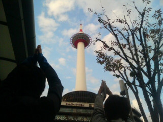 京都滞在もあと少し!京都タワー、イェーイ。モチーフは、かんざしでもなく、ろうそくでもなく、灯台なんですって。海じゃなくて京都市民を守る灯台なんだそうです。