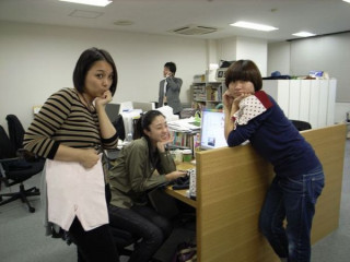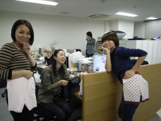 「けいとのぱんつ」片手に、思案顔の、ハラマキギャルズたち。「最終的に どうなるんだろう。」明日の午前11時に注文受付をしめきった後には、エクセルの表と戦い、発注作業が待っているので、ちょっとした予測をたてている所だそうでありますよ。ところでね、1枚目の写真はギャルズたちから「失敗!」の声があがったので、2枚目の写真を撮り直したんだけど、あんまし意味がないとおもう。どうして失敗なのかね。ギャルの思惑は謎が多いね。