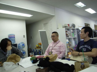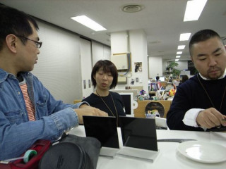 といえば、「ホワイトボードカレンダー」チーム。通称:カフェテーブルで何か会議をしてるので、ちょっと聞いてみると、「カレンダーのことじゃないよ〜ん」というこたえ。ともかく、なにか始まるみたいですわ。「ここにね、も 加わるんですよ〜」なんだろうねえ。