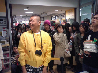 スタート時間の17時より前からこんなにたくさんのお客さまが待ってくださっていました。整理券はすべて配布終了したそうです。ありがとうございます。渋谷ロフトにはジングルベルが鳴り響いておりますー。