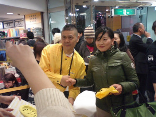 「ただいま〜お買い上げのお客さまに〜ほぼ日特製のおさるの袋に入れて〜お〜渡ししておりまぁす〜2ショットサービスも〜させていただいております〜」
