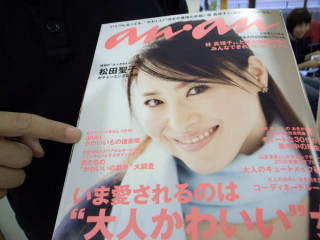 山下さん、なにを見てるんですか。 「anan」ですか? 山下さんが女性誌を読むなんて めずらしいですね。 松田聖子さんが表紙なんですね。