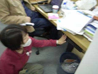 「いやだ! いやだ! いやだ! もう自分の机にもどりたくない!」あまりの自分の机の混とんぶりに、ぼう然としている時間はすぎた気配の。ただいま、錯乱中。に、「はいはい、あやちゃん、 ひとつひとつ 片づけていこうね〜」と、なだめられております。一同爆笑。