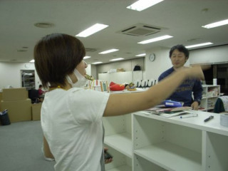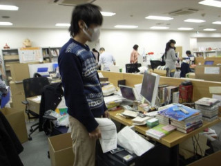 さきほどから、資料の本、資料のCD、サンプルの洋服の海のなかで、ぼけーっとつったってる。「どこから手をつけていいか、 まったくわかりません。」