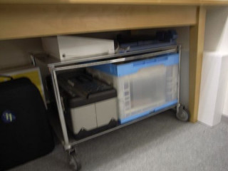 捨てられそうになっていたテレビ台を、が救出。一つは、「工作室」の整理棚に。もう一つは、プリンターを置く台に。ああ、いくところがあってよかったね、テレビ台くん。