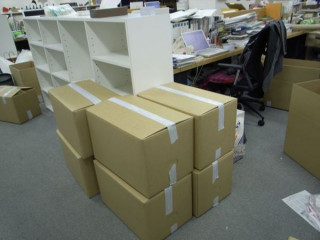じつは、このたびの席替えは、机の増設にともなう席替えであります。つまり、いつもだったら、地獄後には、あたらしい席へ引っ越す作業があるのですが、今回は、荷物をいったん段ボールにいれて、工事がおわるまで、ちょっと脇によけておくのですね。そんなわけで、社内は段ボールだらけになってまいりました。