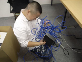 「このLANケーブル、 どうなってるの〜〜!! か、かわもっちゃ〜ん!」「あああ、ちょっとまってください こっちはこっちで大変です!」