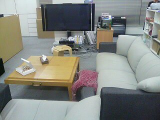 ソファとテーブルのあいだに、 ぴったりとハマったおかしな生き物。