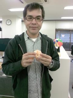 お土産に買ってきた 山盛りのお菓子を前に、 解説をするのです。