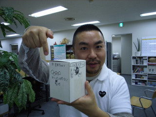 12/18 16:55 2枚目のオジサン達が 微笑んでる写真手前に写ってる 白色の立方体。 てっぺんに「貯金箱」と 書かれているようですが、 「この世は金じゃよ」 とわざわざ マジック書きしているあたり、 何やら深い意味があるのでは、 と想像を膨らませております。 持ち主はどなたですか?