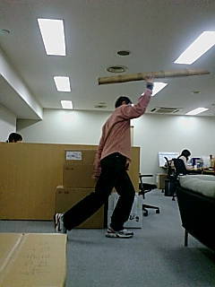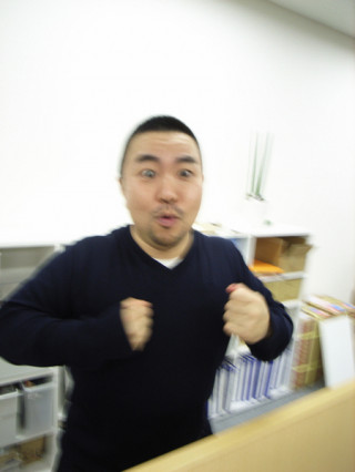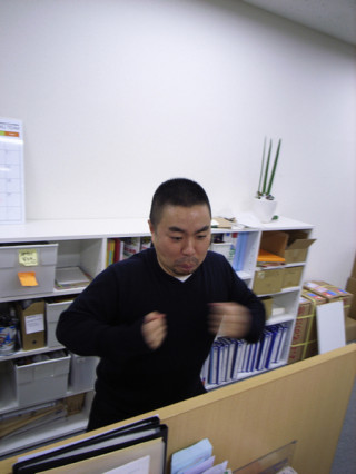 けっこう普段はこんな感じなんですよ。 で、社長がやってきたりすると、 がばちょとカメラをつかみ、 「これはこれは社長!」 ぴょんと飛び出すわけです。 その瞬発力はすばらしいです。 カワズのようです。 |
