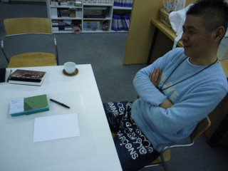 先ほど、本といっしょにお届けする 「糸井重里からのお手紙」を 書いてもらおうと、 著者の前に紙とペンを 置いたのですが‥‥難航。超難航。