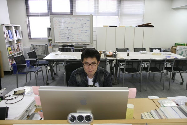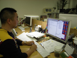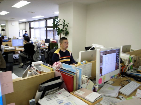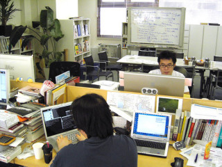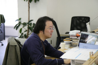 うららかな土曜日の午後、 原稿ヤマドゥミ(山積み)なので 出社しましたら、 宇宙部の が たんたんと作業をしておりました。