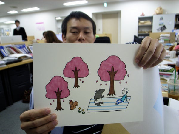 六本木ヒルズの裏にある、 TSUTAYA六本木店では 『はたらきたい。』の特設コーナーを 設置してくれています。 上の写真の女性は馬上(もうえ)さん。 「谷川俊太郎質問箱」をはじめとする ほぼ日の本を大きく展開してくれています。