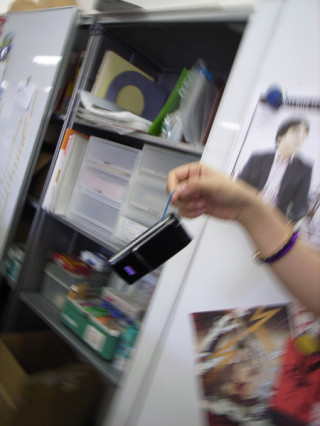 むこうから、ストアチームのさんがやってきた。「よしく〜ん。 携帯鳴ってるよ〜。」※ストアチームの お姉さまがたから、 マンは、 「よしくん」と 呼ばれているらしい。汚いものを持つかのように、携帯のストラップ部分をつまんで持ってきた。「いや、指紋つけちゃ わるいかと思って。」