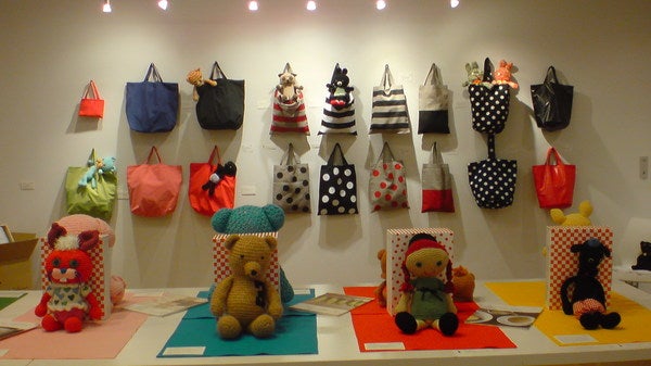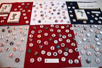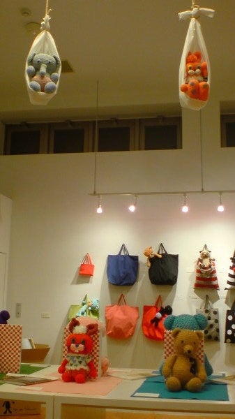 イオギャラリーのグッズにあみぐるみがまじっている展示会です。あみぐるみの缶バッジとポストカードのほかにも、イオギャラリーのトートバッグやかわいい雑貨のショッピングもおたのしみいただけますよー。