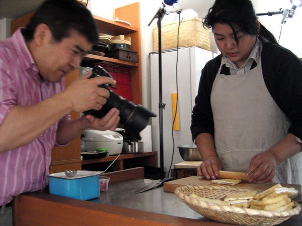 あみぐるみ班とは別にこちら、フードスタイリストの飯島奈美さんのアトリエで撮影を続けております食いしん坊隊でございます。満開の桜のよく見える都内某所。はりきってつくる飯島さん、はりきって撮る大江さん、はりきって食べるわたくし、‥‥ではなくてですね、これでも「手タレ」です!それにしても、3コマめの写真、「ぎゅうぎゅう詰め」ですね。飯島奈美さんの新コンテンツは4月1日スタートです!