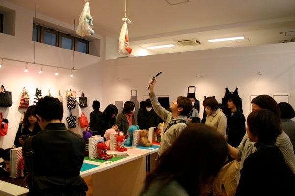 小林聡美さんと、もたいまさこさんが、「タカモリ・トモコ全集展」にご来場くださいました。そういえばタカモリさんは、このおふたりの出演映画、「めがね」で、編み物の指導をされていたのでした。「お写真、よろしいでしょうか?」と声をかけたら、ごらんのように快く応じてくださいました。きょうはおふたり、4月5日から日本テレビではじまる、「2クール」という番組の撮影をされていたそうです。このおふたりが出る番組‥‥どんな内容なんでしょう?気になりますよね!