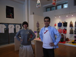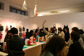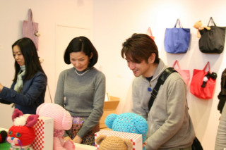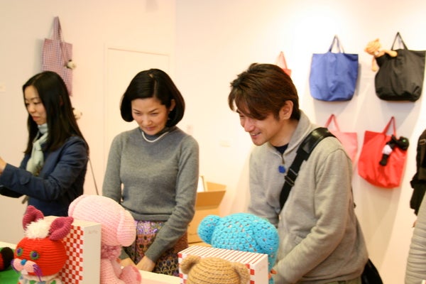 男子あみぐるみ部のトリバタケハルノブさんがいらっしゃいました。雨のなかありがとうございます。お客さまが途切れないイオギャラリーからお伝えいたしました。