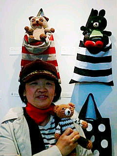 私と同じ名字のシブヤさん。ご自分でもあみぐるみを作ってらっしゃるとのことで、自作のくまさんと一緒にいらしてくださいました!「ワンピースのうさぎ」さんと「パグくん」とみんなでパチリ。ちいさな国旗のボーダーシャツも、とってもお似合いですー。
